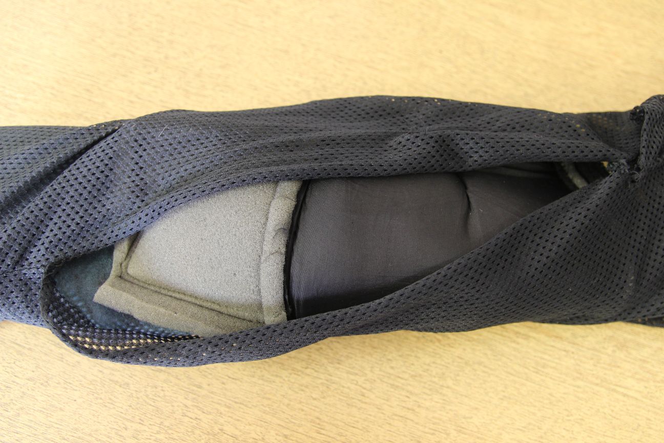 Breathable black textile material at the back of the knees and a breathable black lining.