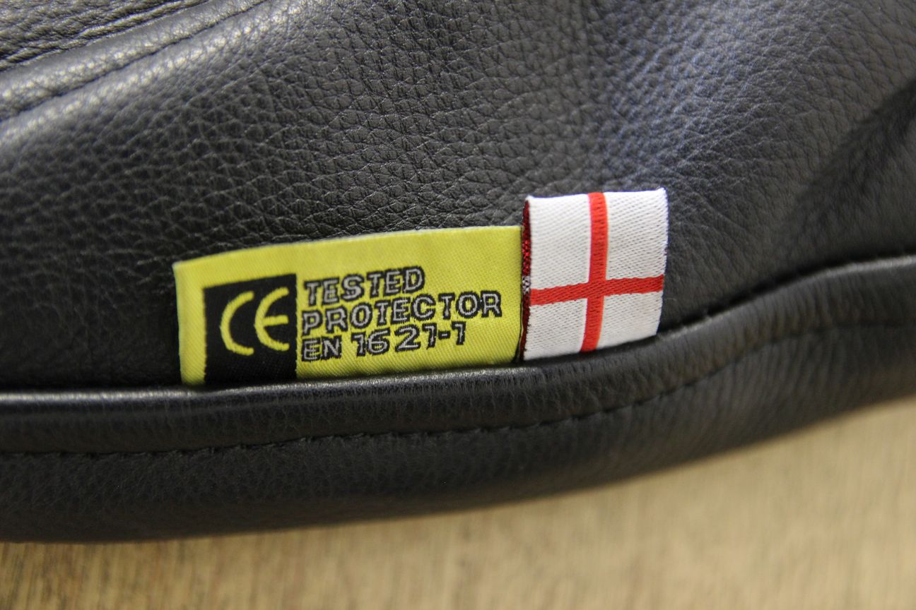 SUPERB QUALITY BRITISH BRAND LEATHER TROUSERS WITH FULL SET OF PROTECTORS. GREAT CONDITION, BARELY WORN - THEY LOOK NEW. THESE ARE HARD TO FIND IN THIS SIZE.