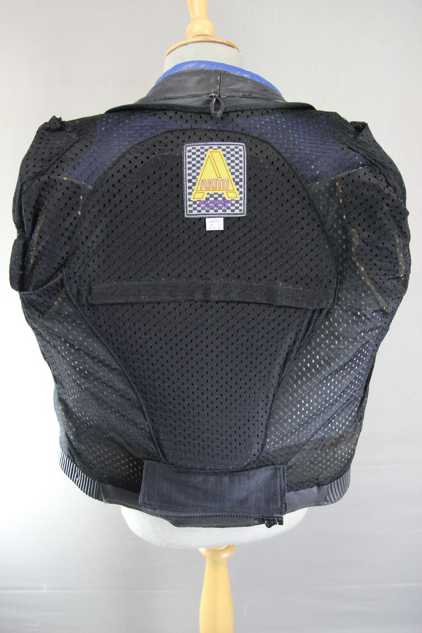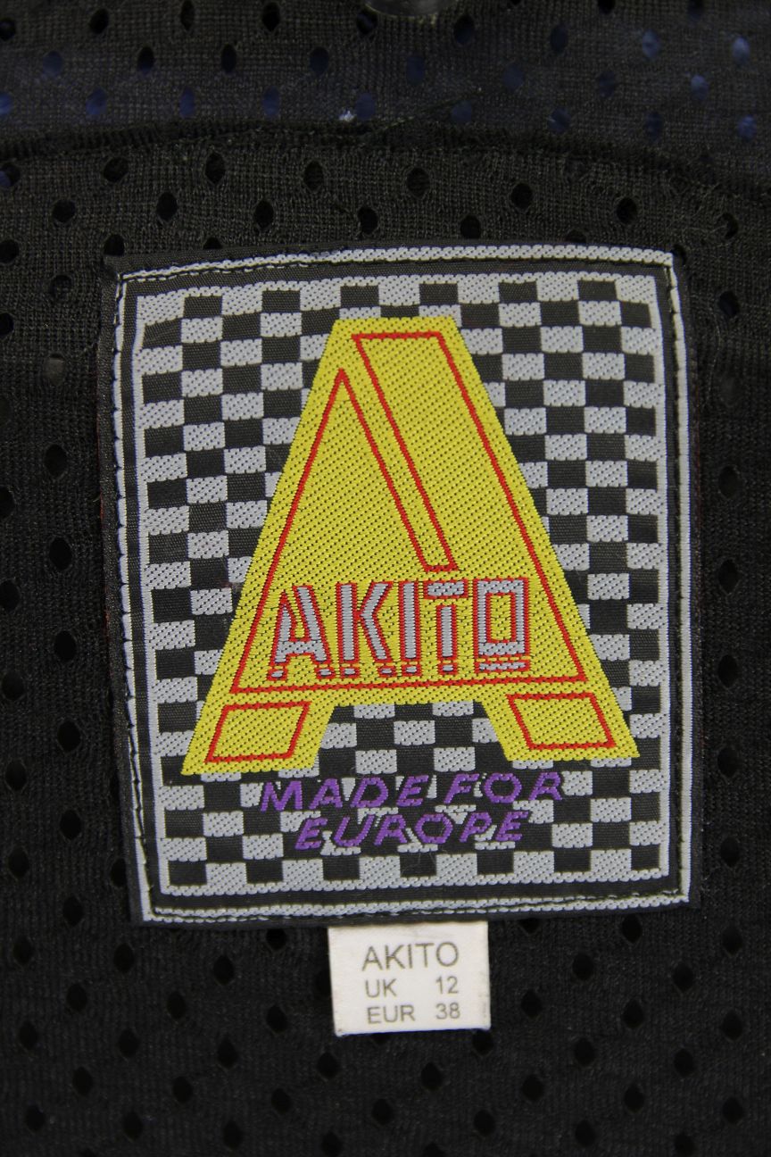 AKITO BLACK, BLUE & SILVER LEATHER BIKER JACKET WITH PROTECTORS: SIZE 12
