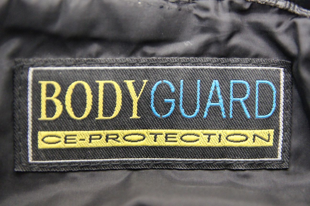 These are fitted with removable 'Bodyguard' CE armour at the knees, extending down the shins, held in velcro fastened 'pockets' on the lining. There is built in light padding at the hips and knees/shins. There are panels on the leather for velcro attached knee sliders (not included).