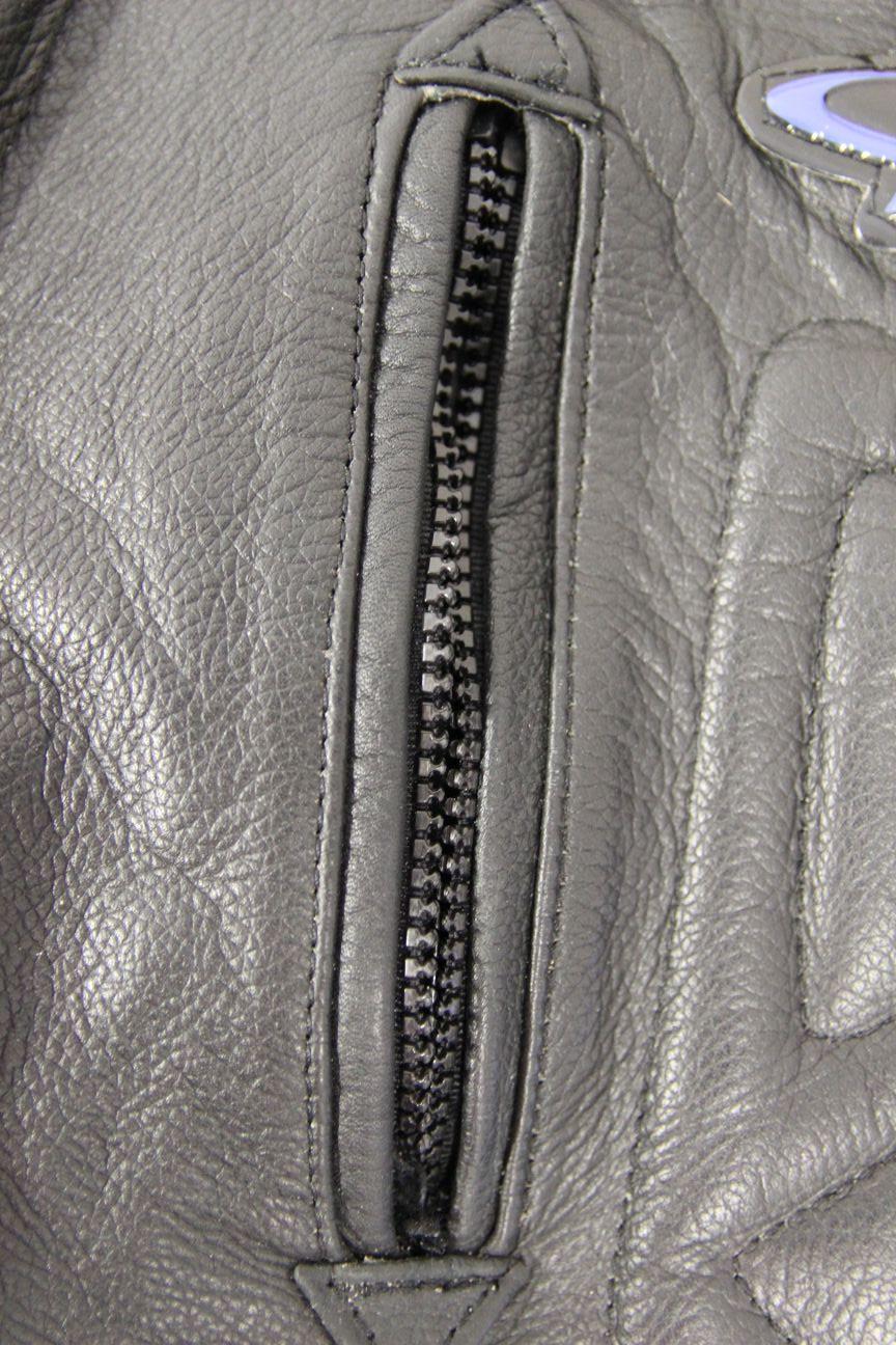 There are 2 pockets at the front. Please note that the zipper is missing from the left pocket zip, so it's no longer possible to close this pocket.