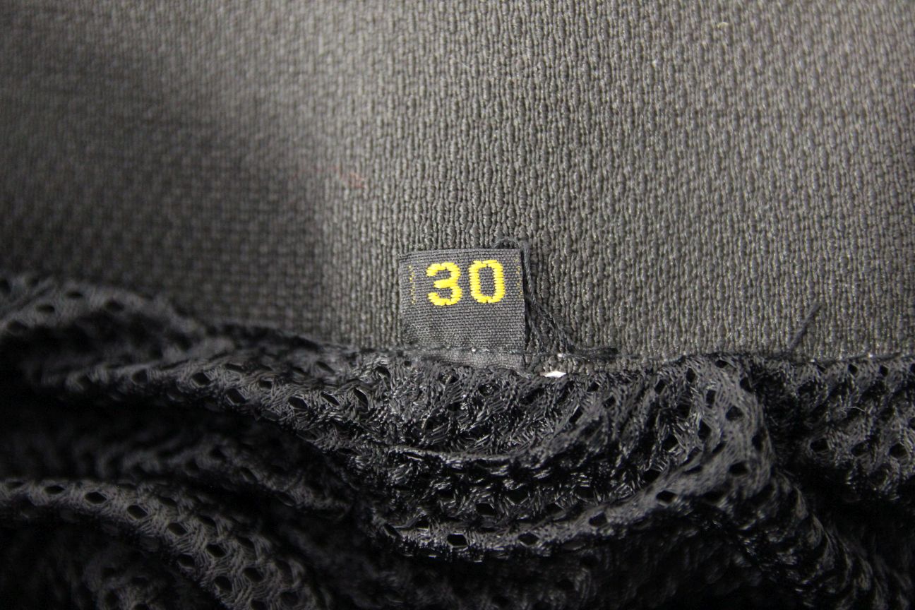 Part made from a breathable black kevlar type textile material (at the top of the legs at the front and back of the legs from the knees down) and the trousers have a breathable black lining.