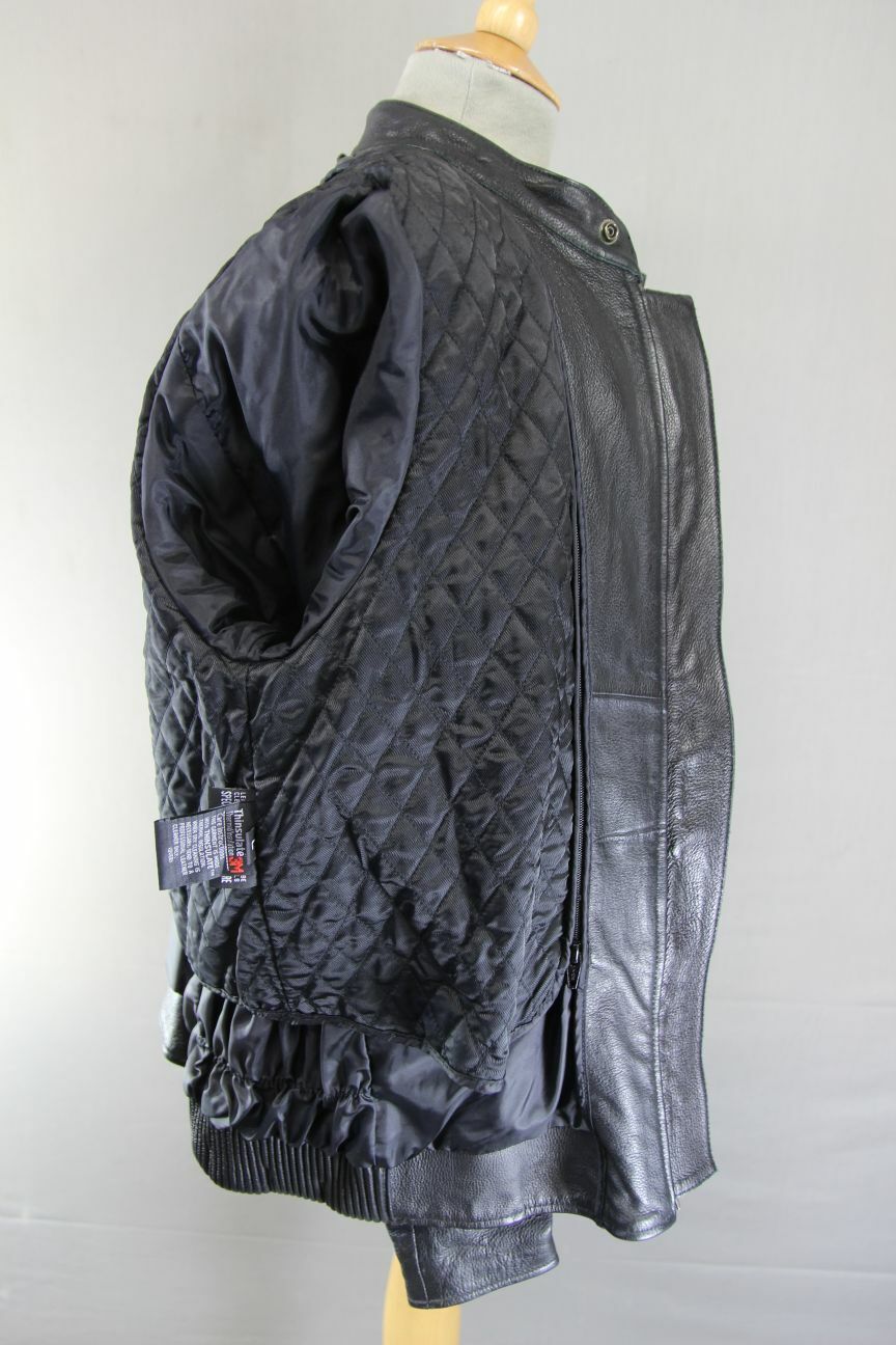 BIKER'S GEARBOX BLACK BIKER LEATHER JACKET WITH DETACHABLE THINSULATE THERMAL LINING