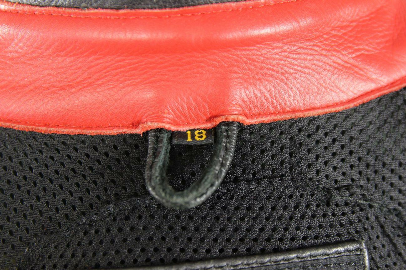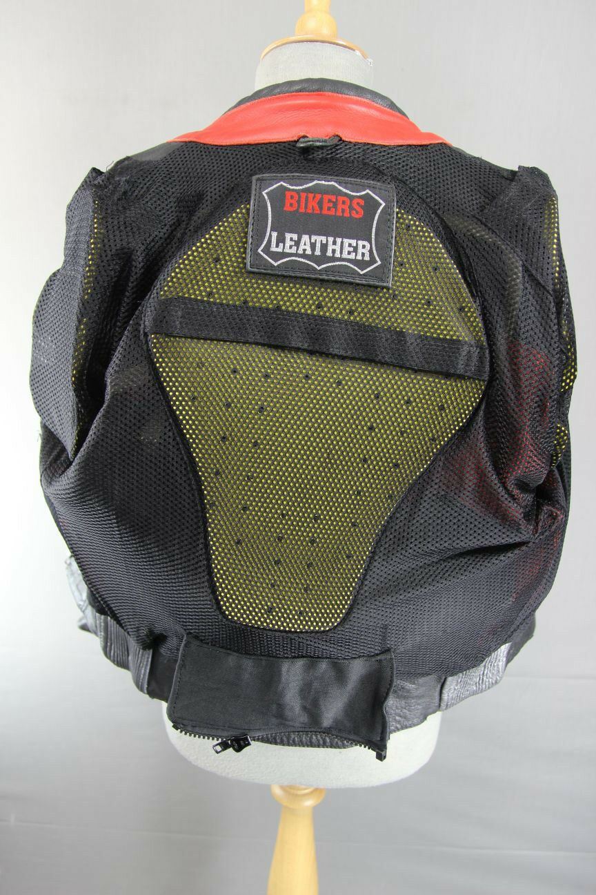 BIKERS LEATHER BLACK, RED & SILVER JACKET WITH REMOVABLE BACK, SHOULDER & ELBOW ARMOUR
