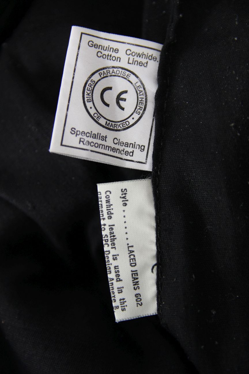 BIKERS PARADISE BLACK COWHIDE LEATHER LACED JEANS: WAIST 46 INCHES/LEG 29 INCHES