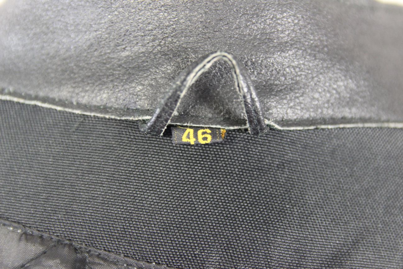 BLACK, RED & WHITE LEATHER BIKER JACKET + BACK, SHOULDER & ELBOW PROTECTORS 42IN
