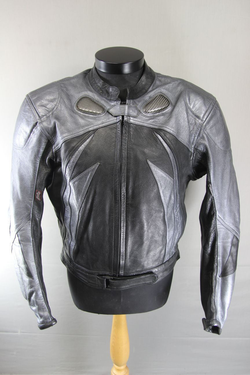 BLACK & SILVER BIKER'S GEARBOX LEATHER BIKER JACKET WITH REMOVABLE BACK, SHOULDER & ELBOW PROTECTORS