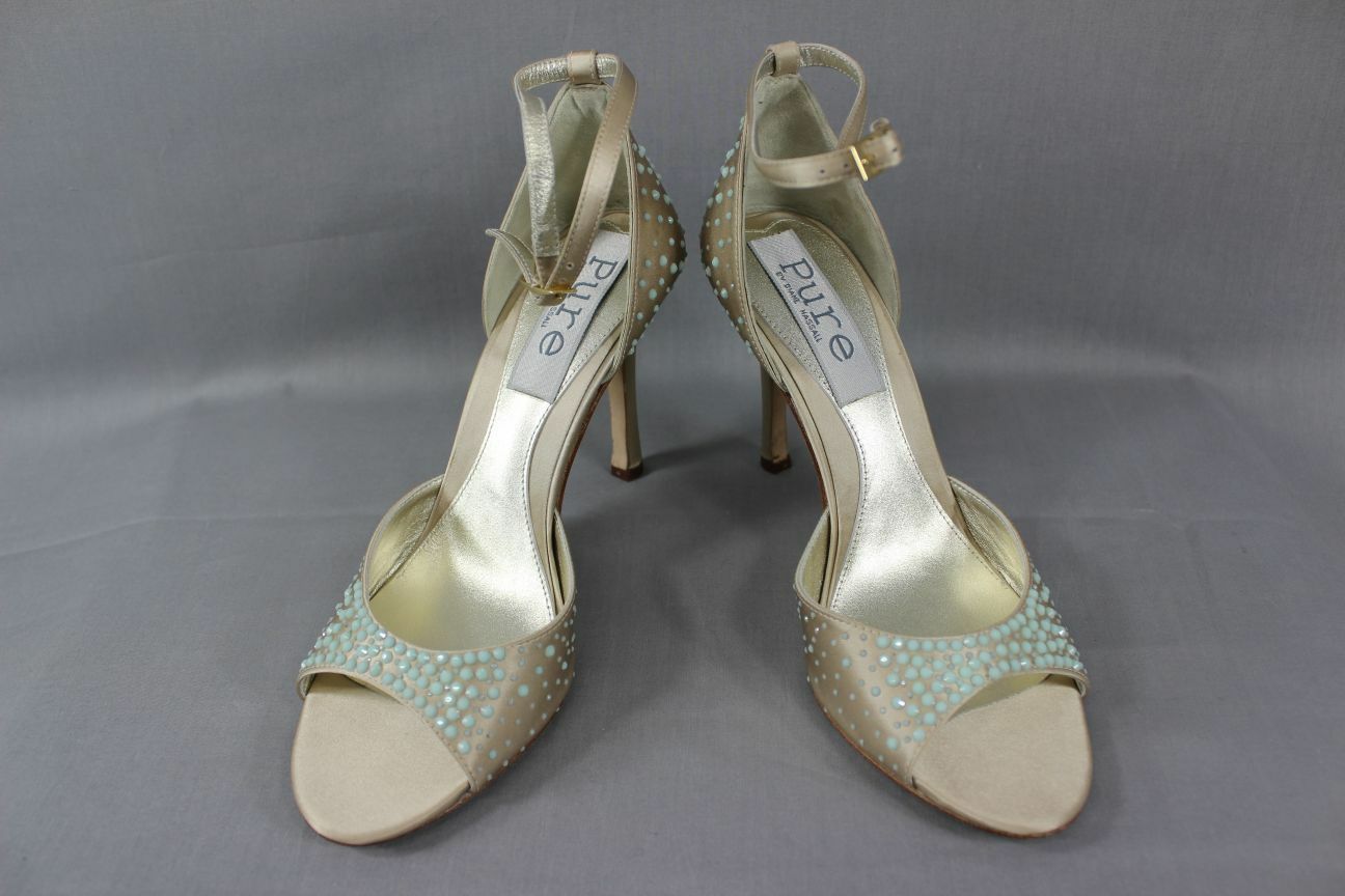 SIMPLY STUNNING HANDFINISHED CHAMPAGNE COLOURED SHOES AT A FRACTION OF RRP FROM THE RENOWNED DESIGNER DIANE HASSALL, WHO HAS WORKED WITH JIMMY CHOO AND EMMA HOPE. SUITABLE FOR WEDDINGS OR OTHER SPECIAL OCCASIONS.