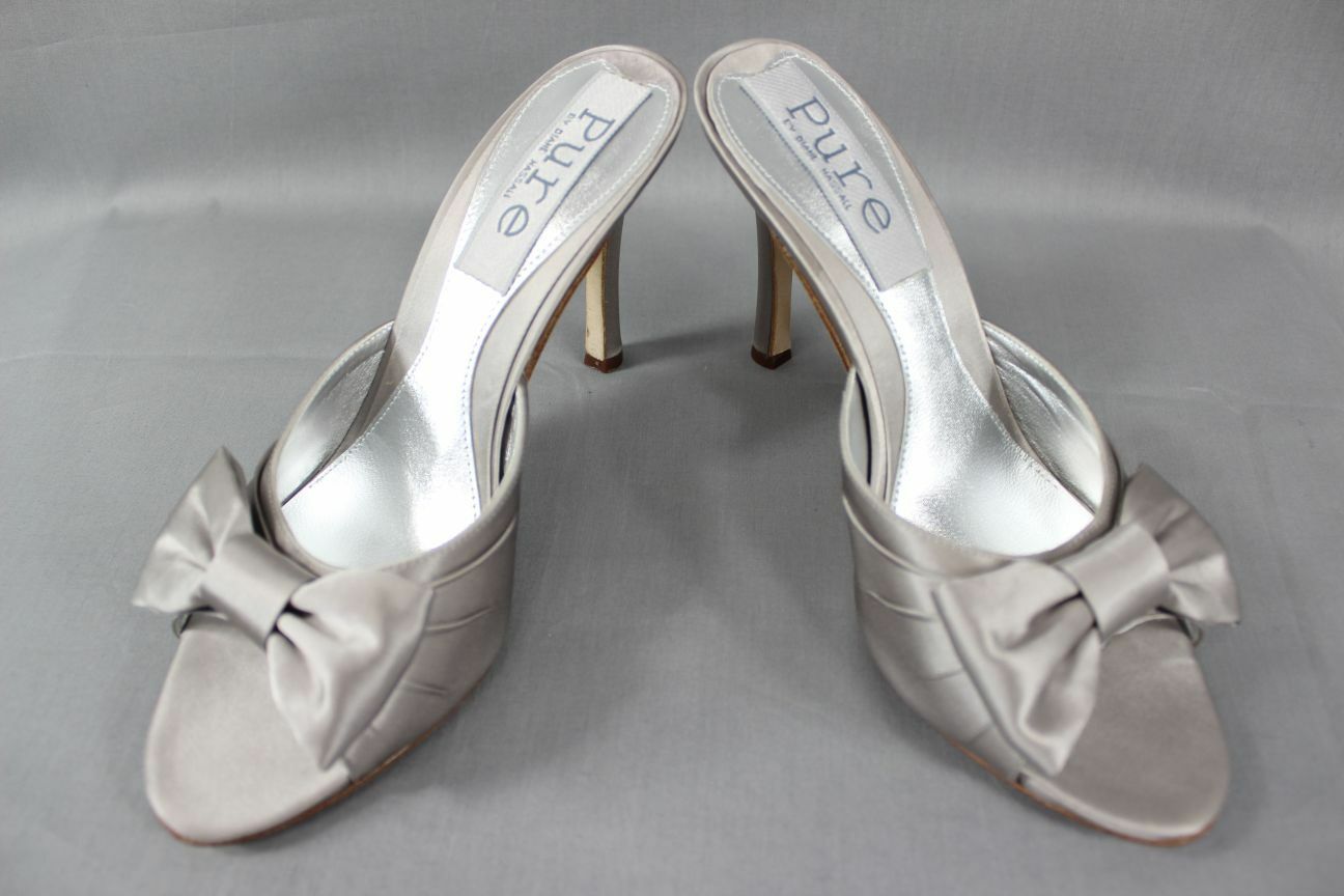 BNIB PURE BY DIANE HASSALL GREY SILK HEELED LEATHER BRIDAL SHOES