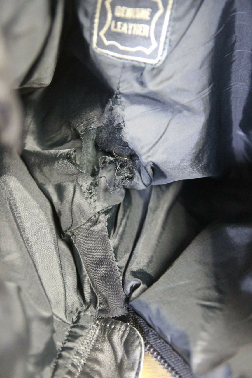 Very good overall condition but there is a tear along the central seam of the lining, please see photo.