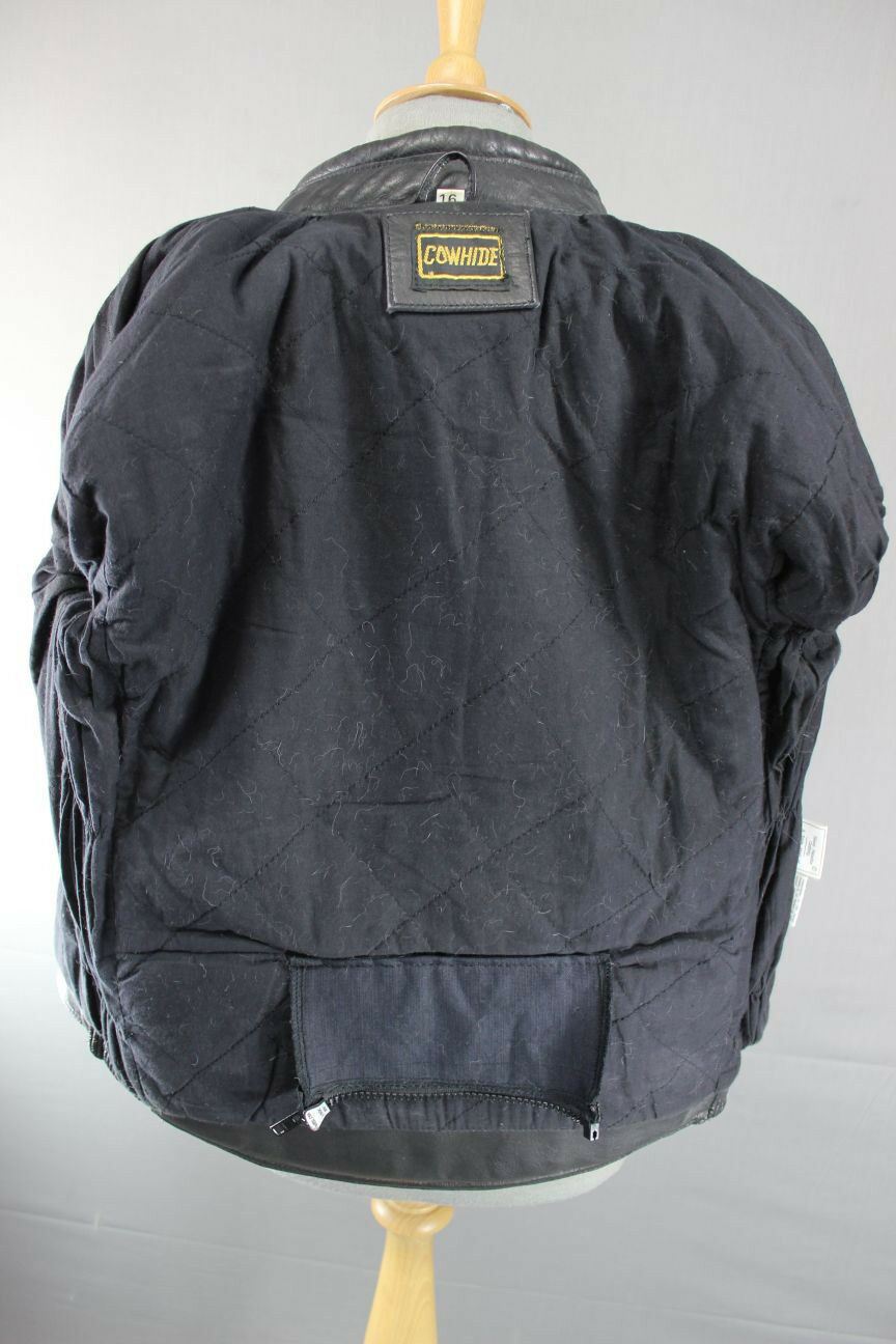 A SUPERB QUALITY COTTON LINED BIKER JACKET, MADE FROM TOUGH, HARDWEARING COWHIDE LEATHER, OFFERING A HIGH LEVEL OF PROTECTION - VERY GOOD CONDITION. THE JACKET CARRIES THE CE SAFETY MARK.