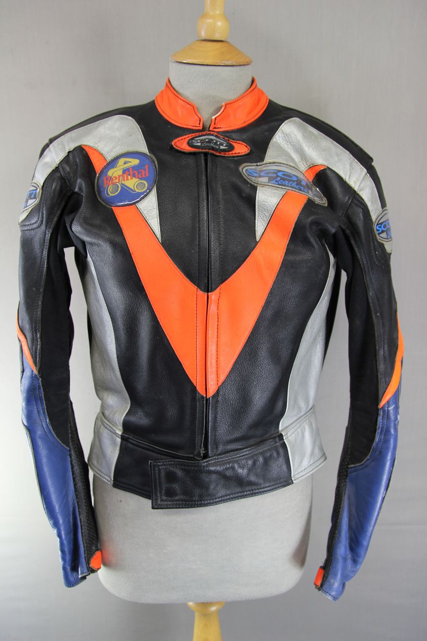 BRITISH MADE SCOTT LEATHERS SPORTS/RACING BIKER JACKET WITH SHOULDER & ELBOW CE ARMOUR