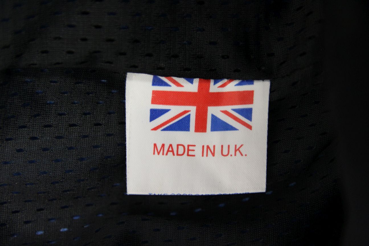 Part made from a breathable black kevlar type textile material (at the thighs and back of the legs from the knees down) and the trousers have a breathable black lining.