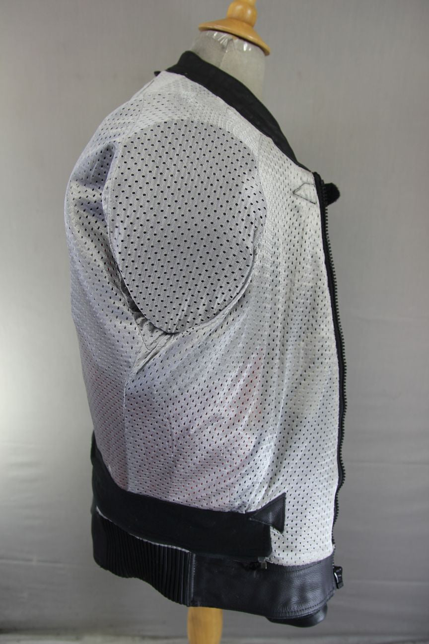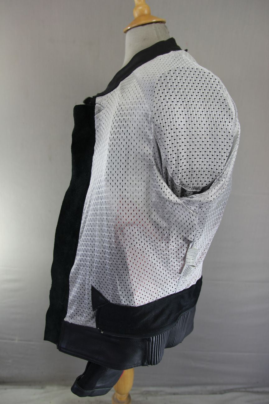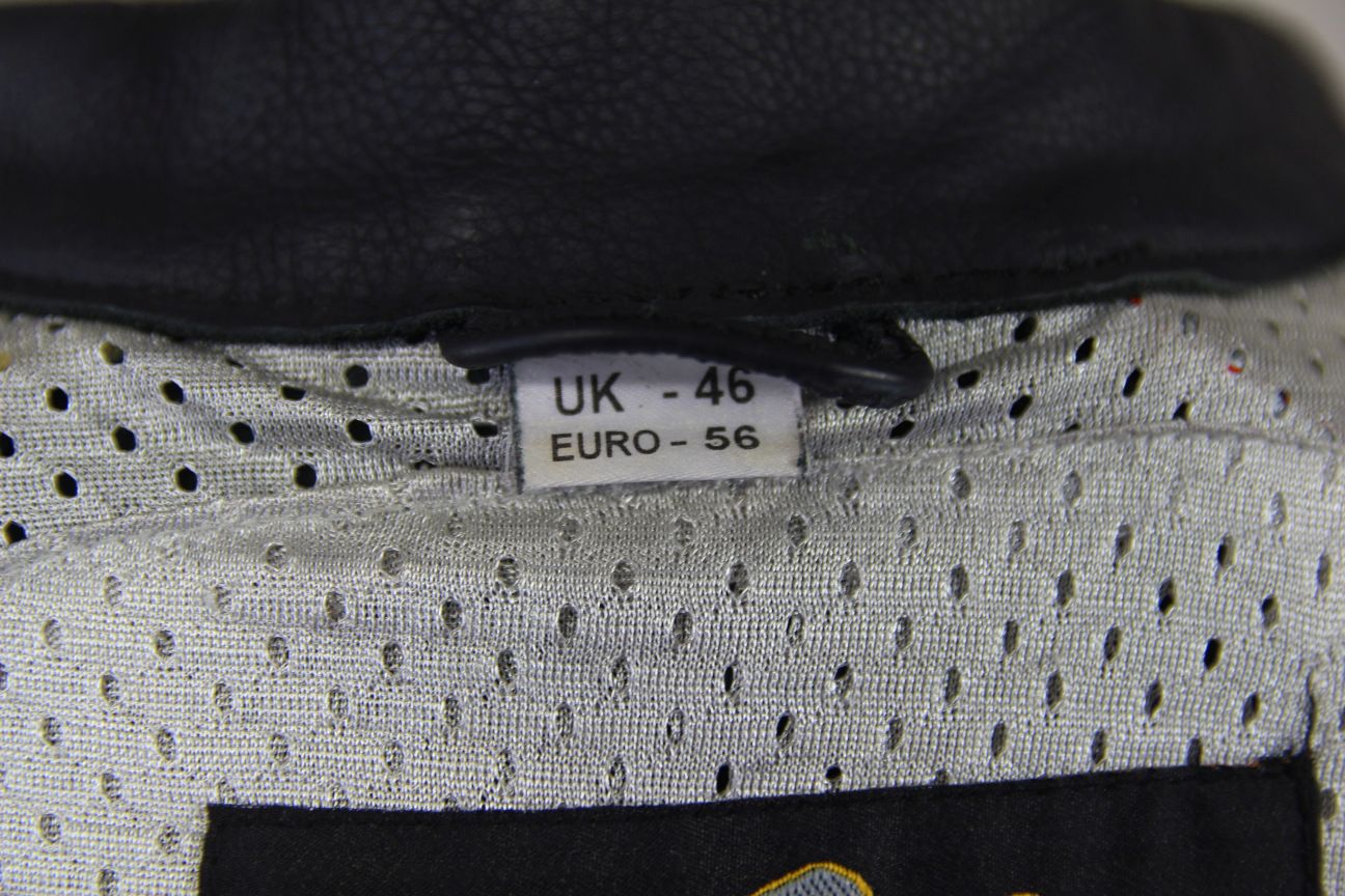 BUFFALO BLACK, RED, SILVER & WHITE LEATHER BIKER JACKET + KNOX CE ARMOUR 46 INCH