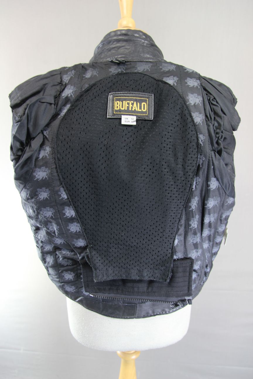 The jacket has a quilted black lining, imprinted with the Buffalo brand name/logo.