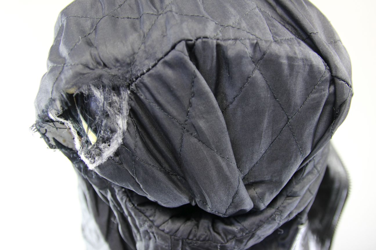 The leather is in excellent condition; there is some wear to the lining along the seams at the tops of the sleeves, as pictured.