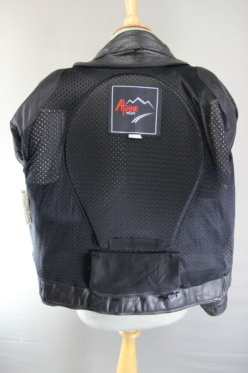 CLASSIC ALPINE WEAR BLACK LEATHER BIKER JACKET WITH BACK PROTECTOR: SIZE 16