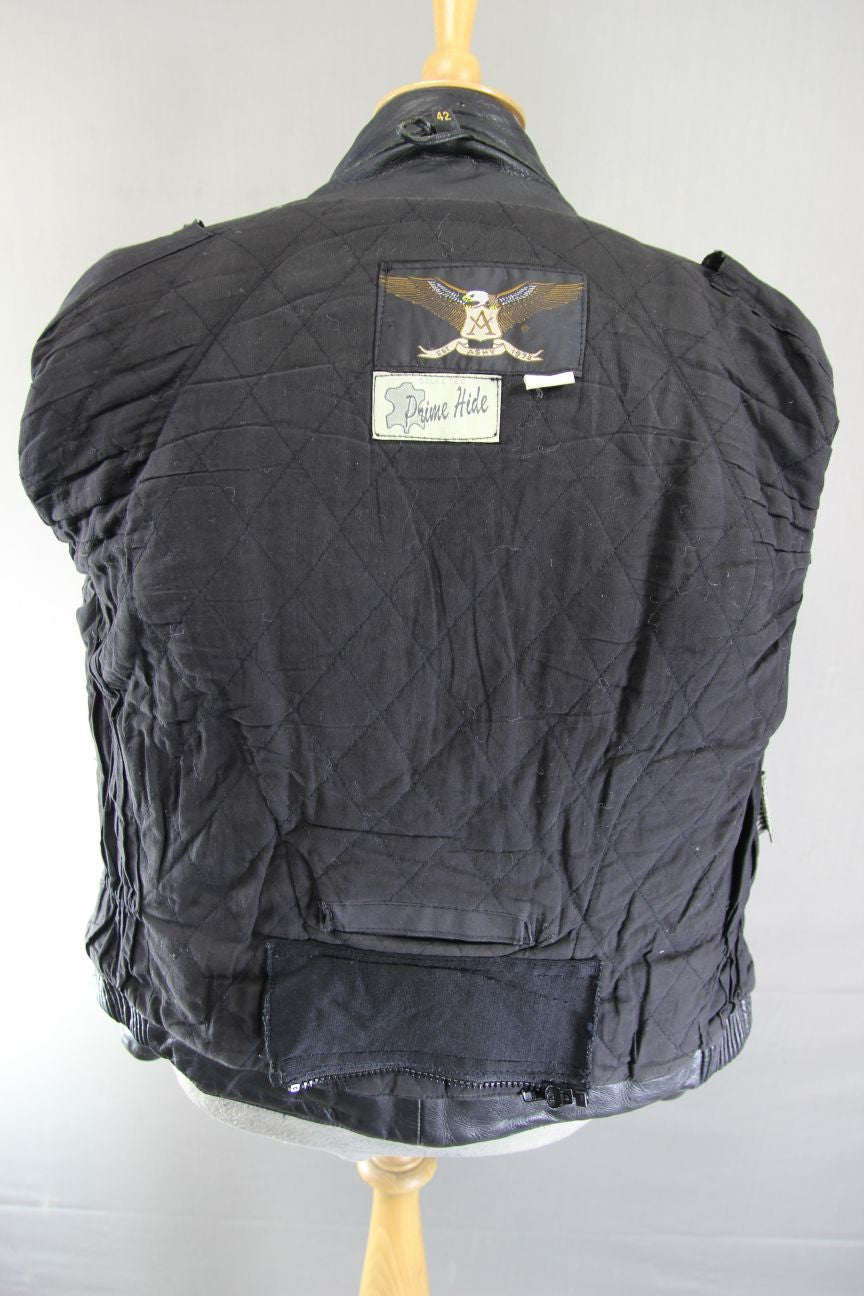 A SUPERB QUALITY BIKER JACKET, MADE FROM TOUGH, HARDWEARING PRIME HIDE LEATHER. GREAT FOR ALL YEAR ROUND WEAR - WARM QUILTED LINING BUT ALSO WELL VENTILATED.
