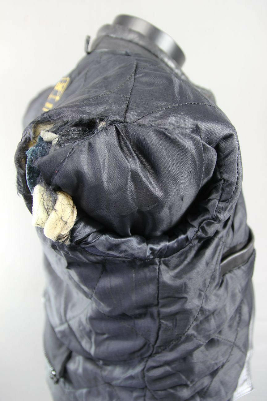 The leather is in great condition, however there is a large tear to the lining along the seam at the top of the left sleeve, as pictured.
