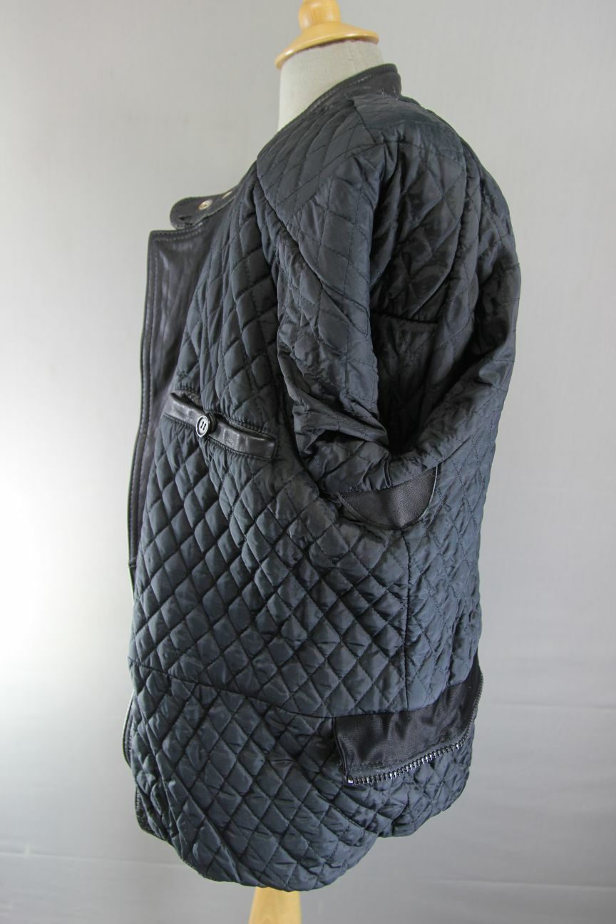 The jacket has a quilted black lining. There is some slight wear to this to the side of one of the pockets, please see photo.