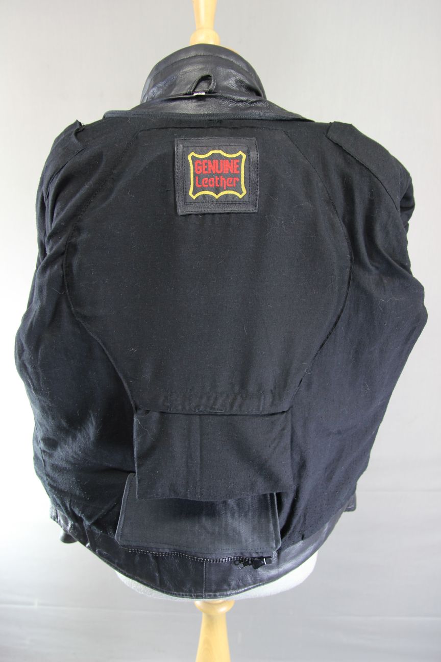 A SUPERB QUALITY BLACK LEATHER BIKER JACKET WITH FULL SET OF ARMOUR.