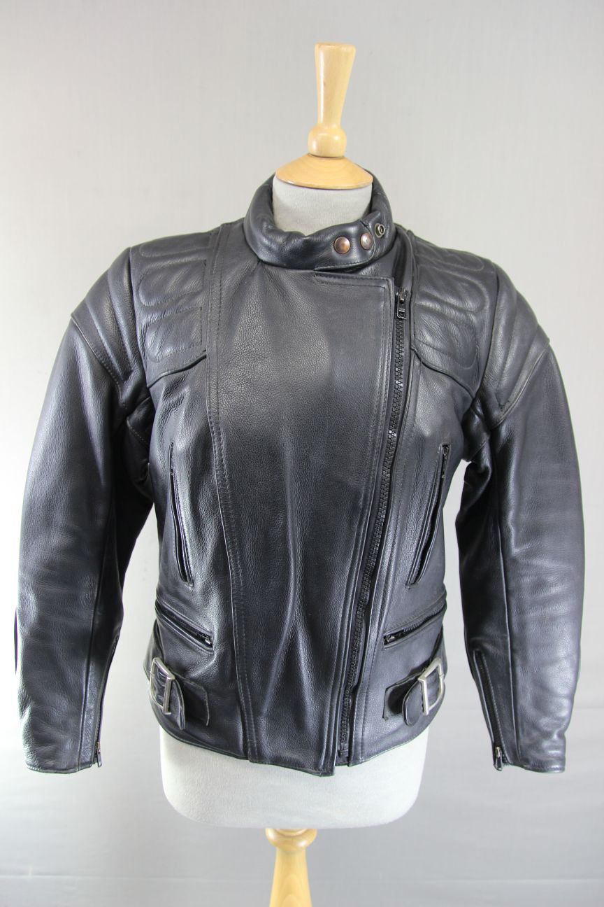 CLASSIC BRITISH MADE BLACK SCOTT LEATHERS BIKER JACKET: SIZE 14