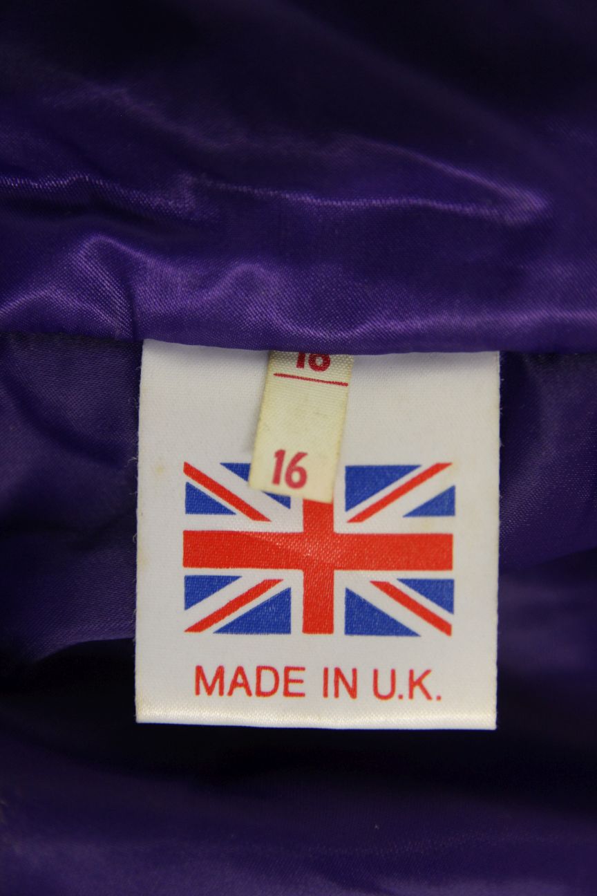 The jacket has a smooth, silky purple coloured lining.