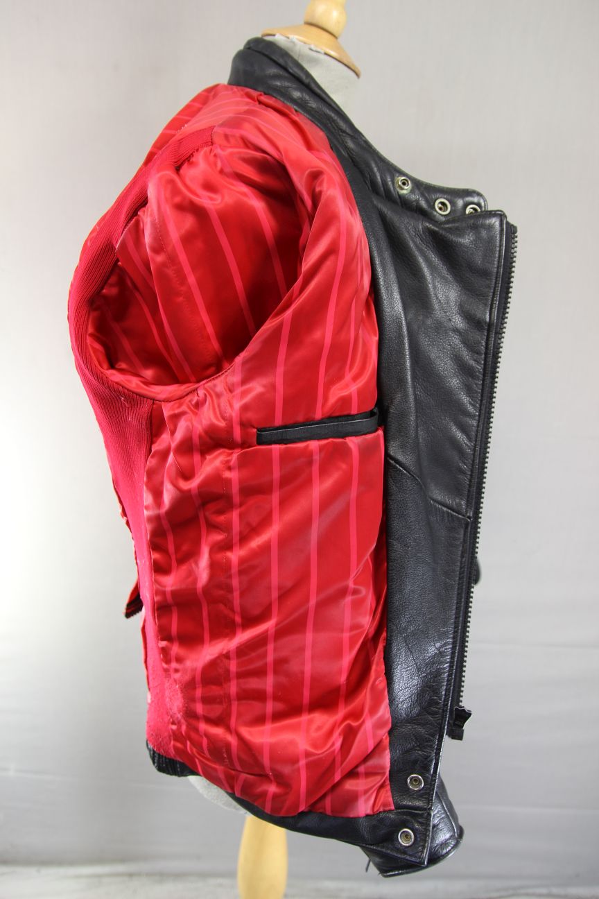 A SUPERB QUALITY BRITISH BRAND CLASSICALLY STYLED BLACK LEATHER BIKER JACKET.