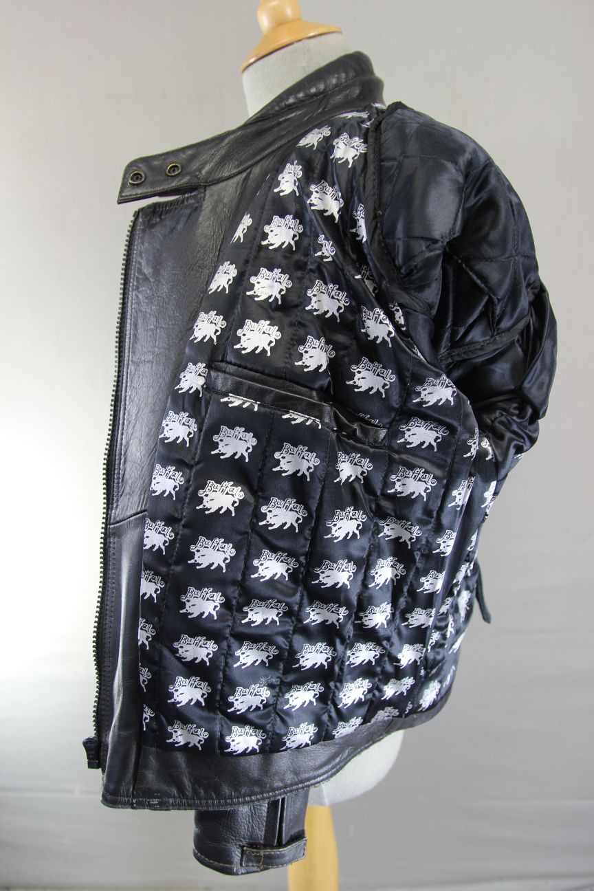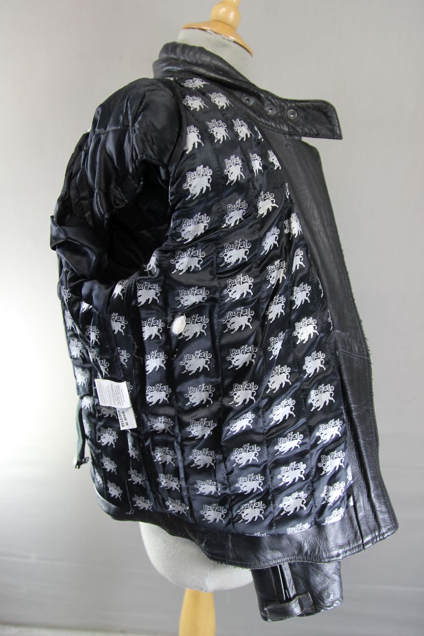 CLASSIC BUFFALO BLACK LEATHER BIKER JACKET 34-36 INCH/SIZE 12