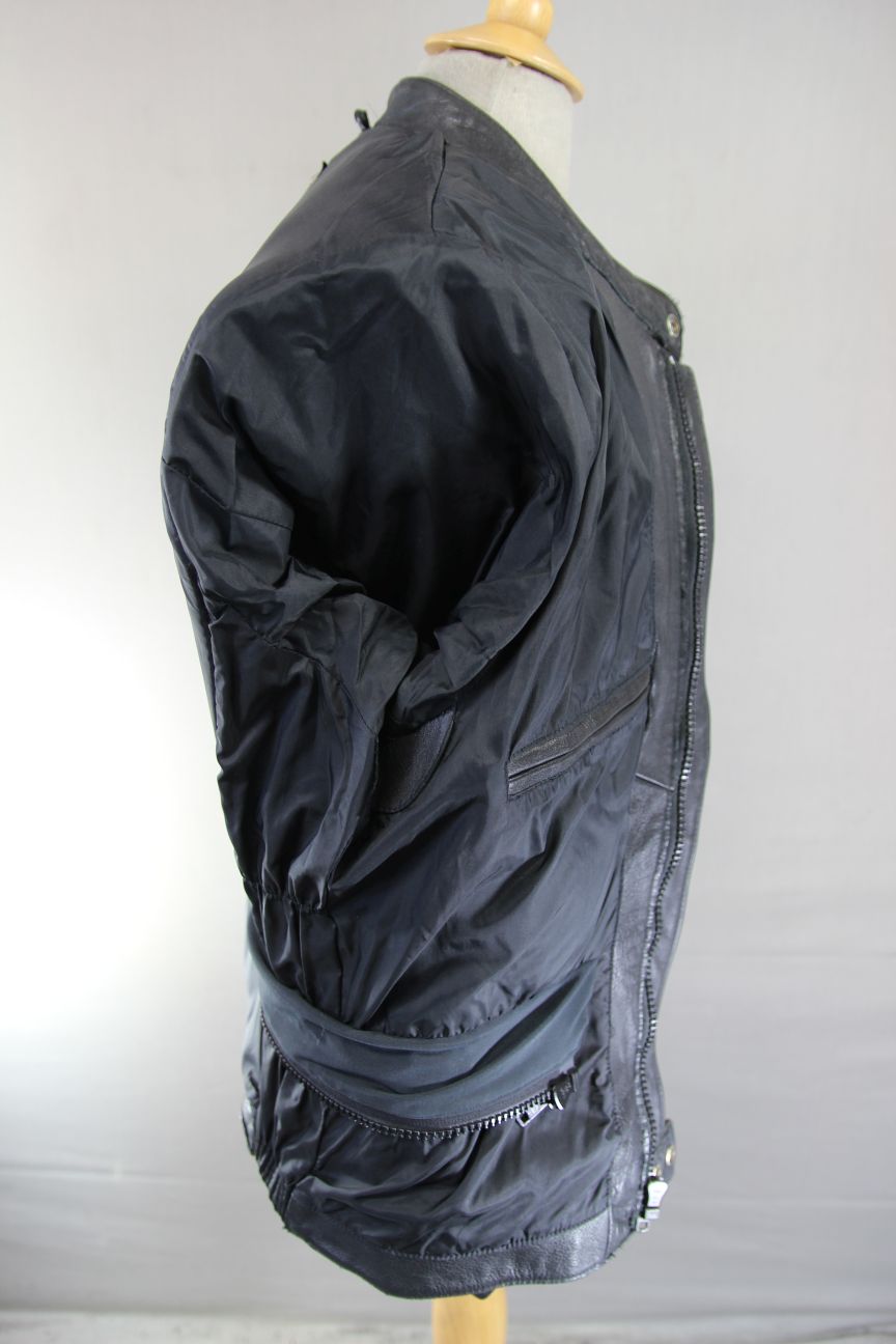 The leather is elasticated behind the sleeves and down the sides of the jacket.