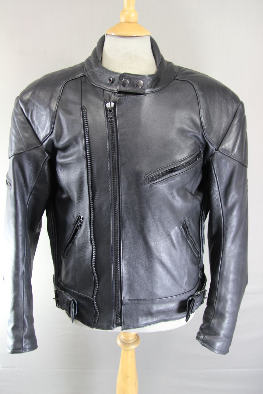 CLASSIC RACER BLACK LEATHER BIKER JACKET 42-44 INCH CHEST