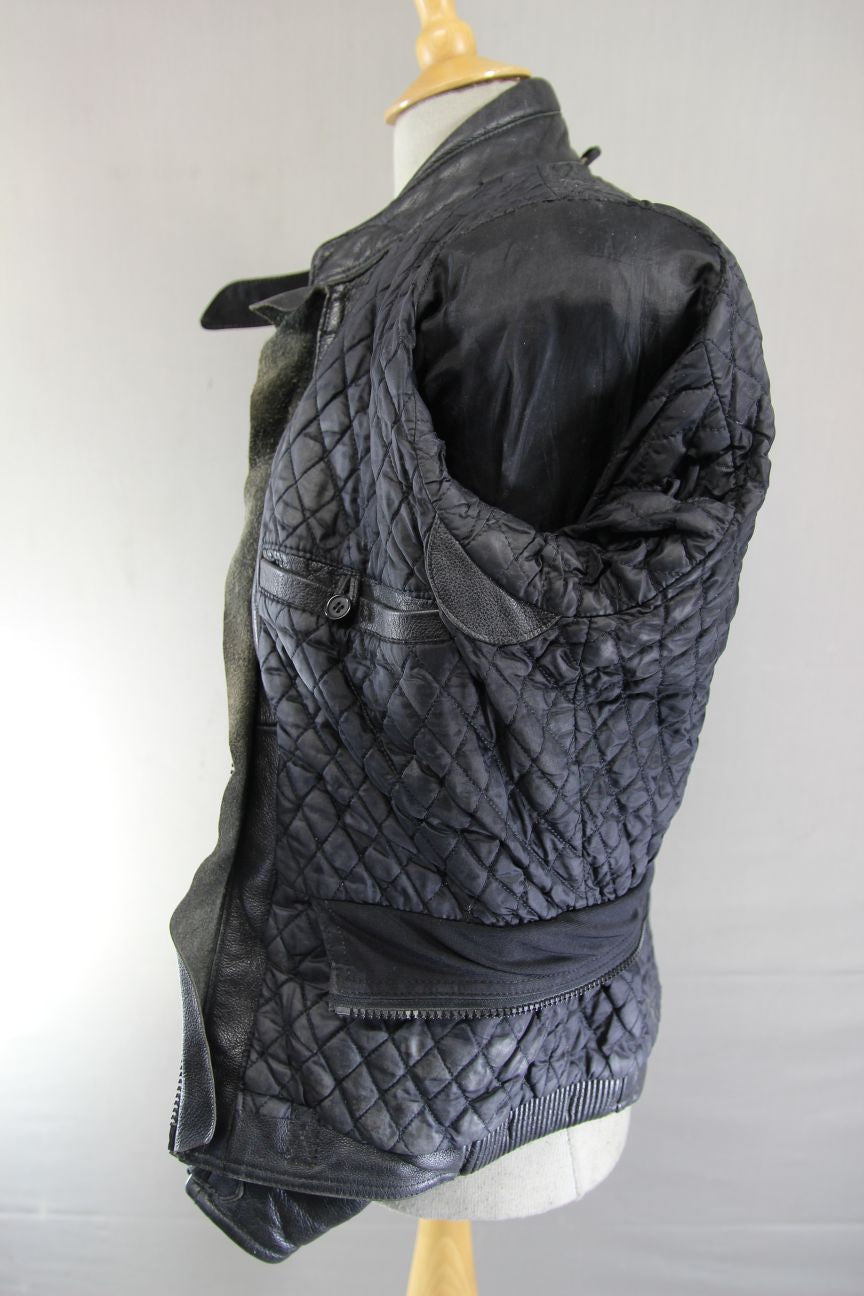 The jacket has a quilted black lining.