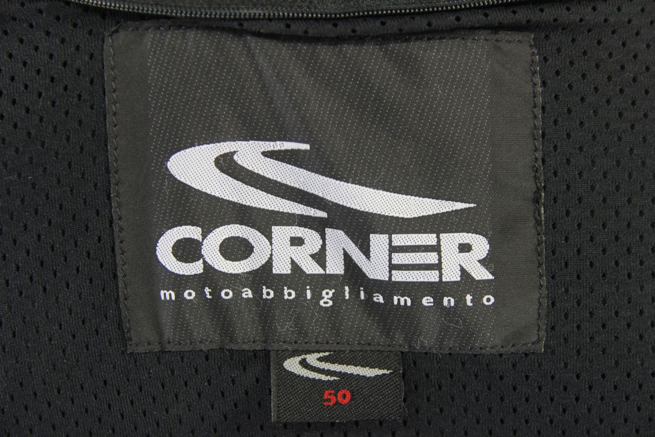 The jacket is black, with yellow and white trim. There are also Corner Classic logos on the chest on the left and at the back of the shoulders.