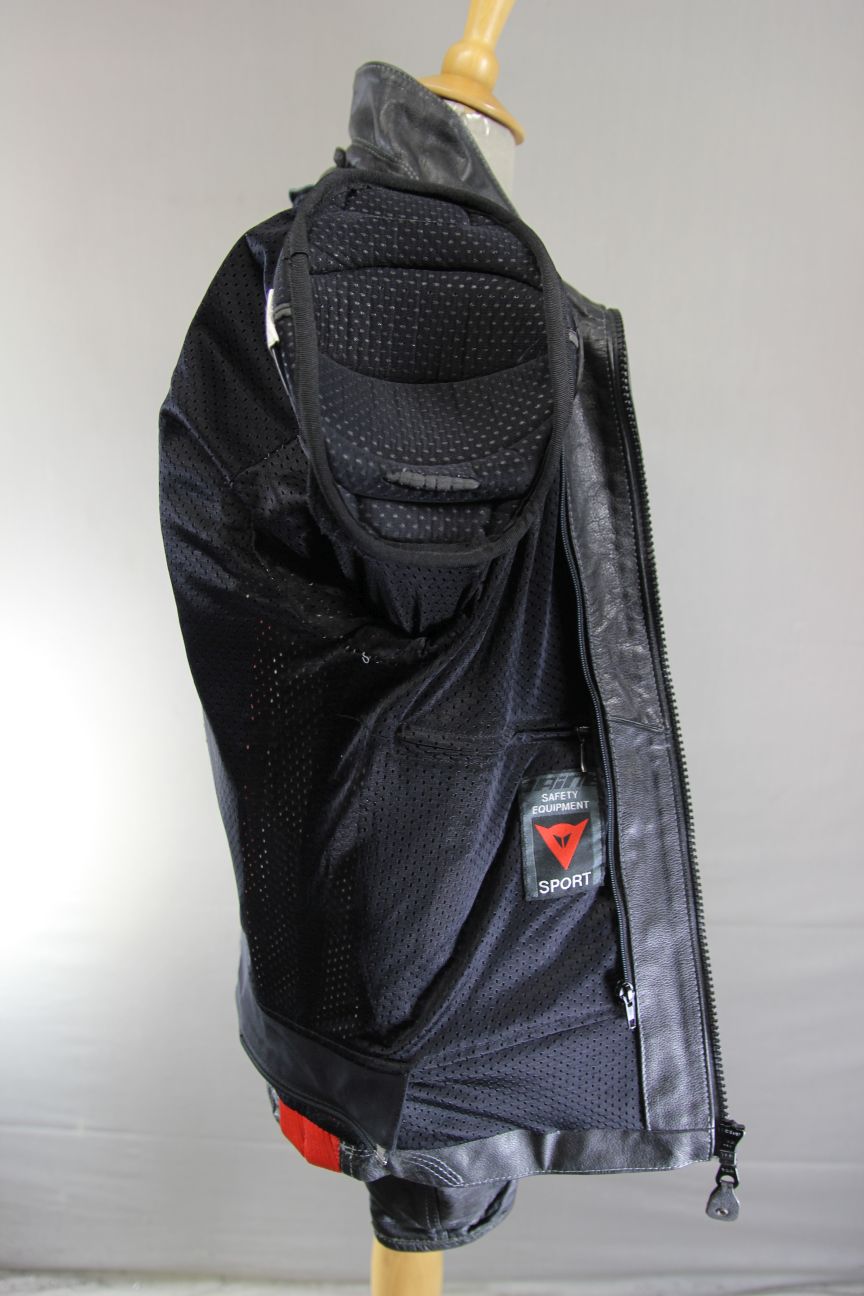 DAINESE BLACK & RED LEATHER BIKER JACKET WITH SHOULDER & ELBOW CE ARMOUR 42 INCH