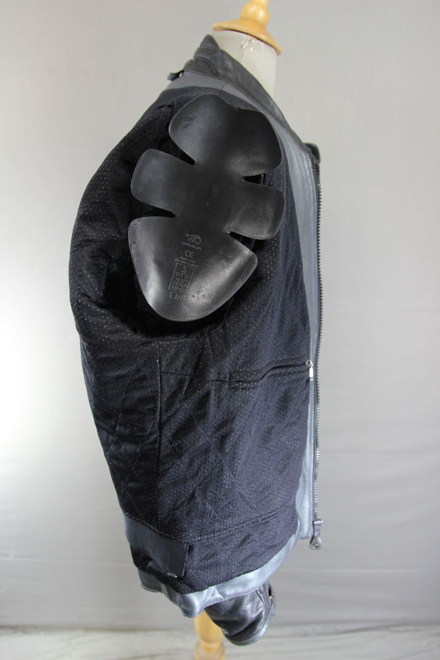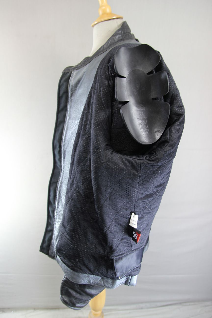 A SUPERB QUALITY VINTAGE LEADING BRAND LEATHER BIKER JACKET WITH CE ARMOUR.
