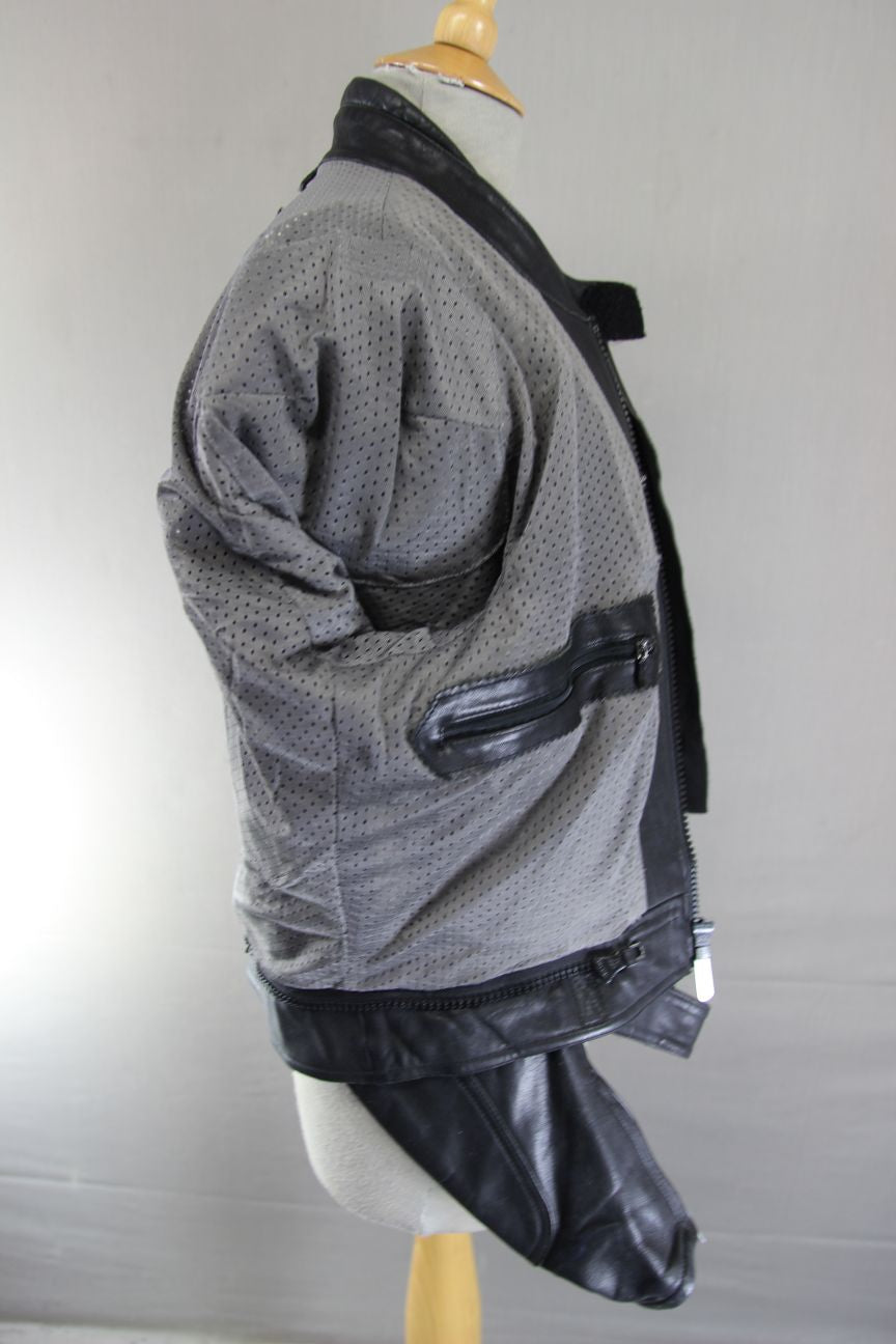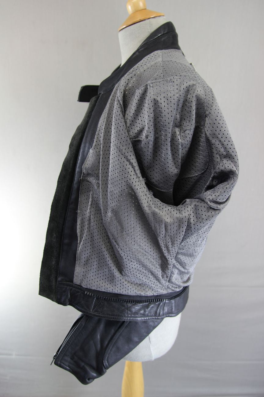 The leather is perforated for ventilation at the sides of the jacket and at the inside of the elbows.