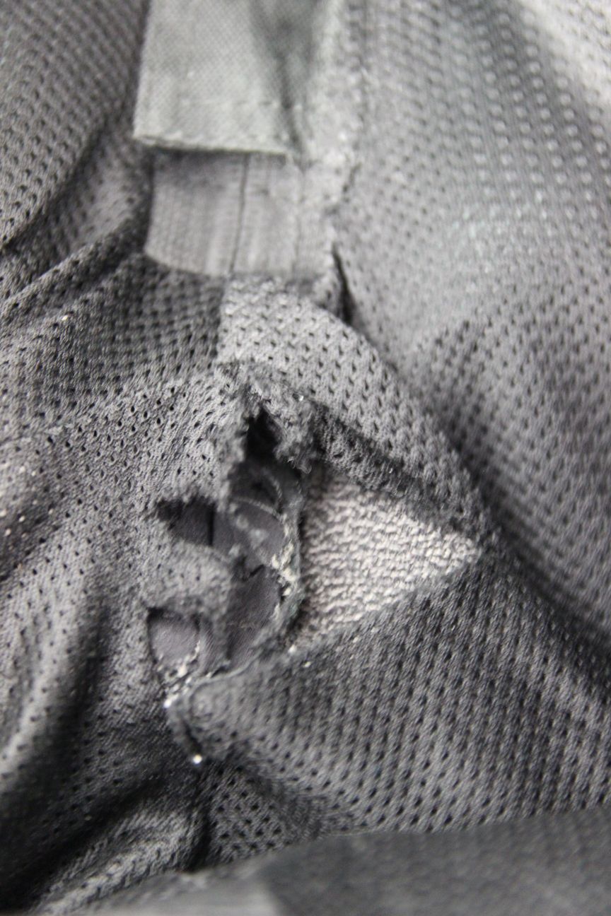 The trousers have a breathable black lining. There is a tear to the lining just below the zip, as pictured.