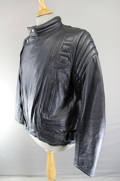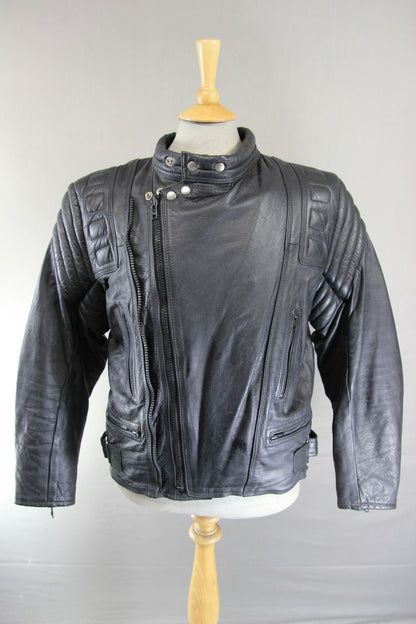 DYNAMIC LEATHER CLASSIC BLACK COWHIDE BIKER JACKET + THINSULATE 3M LINING 42-44"