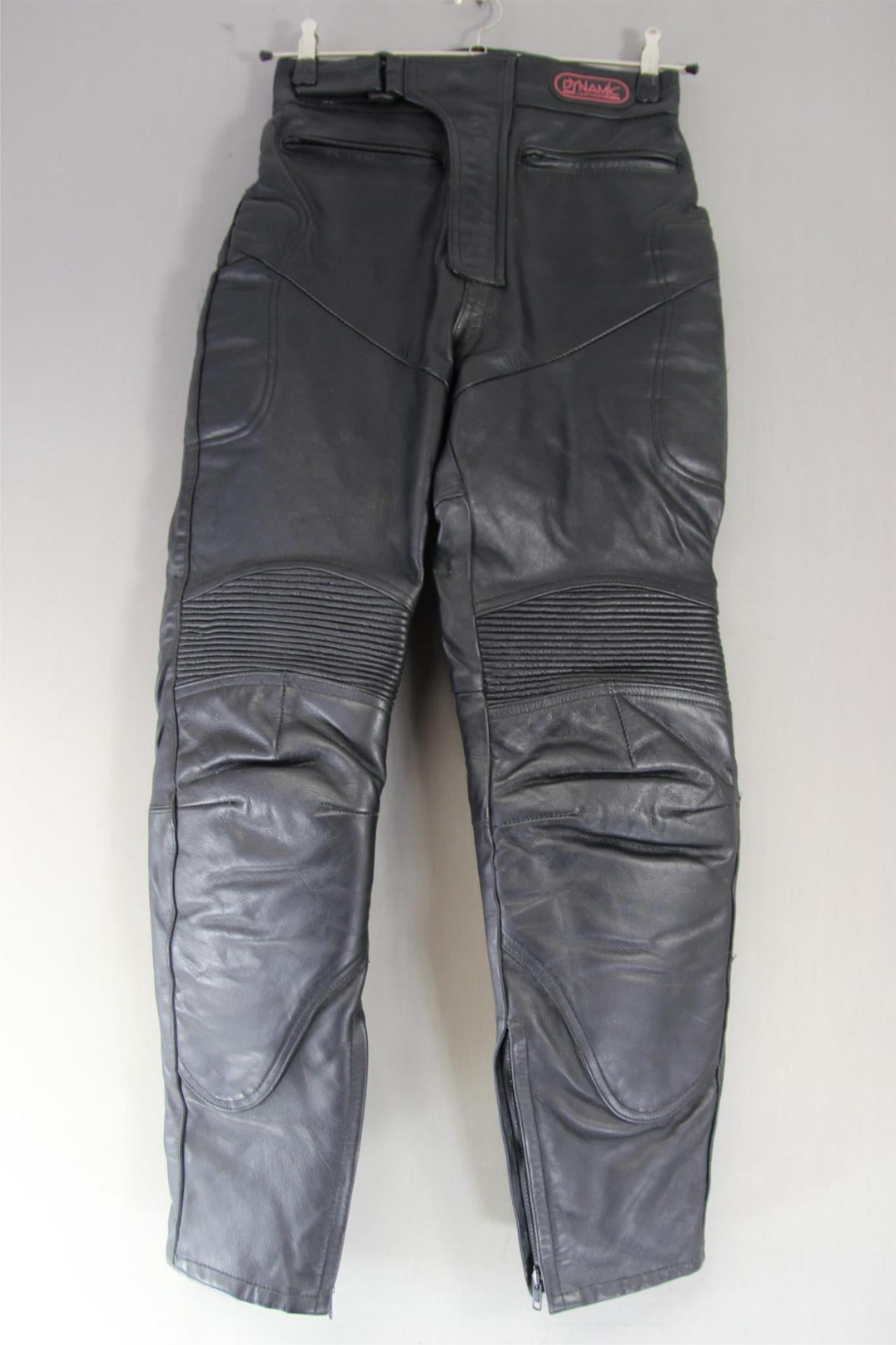 DYNAMIC LEATHERS BLACK BIKER TROUSERS + CE ARMOUR: WAIST 28-30IN/INSIDE LEG 30IN