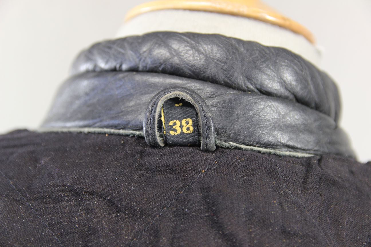 The jacket has a quilted black lining.