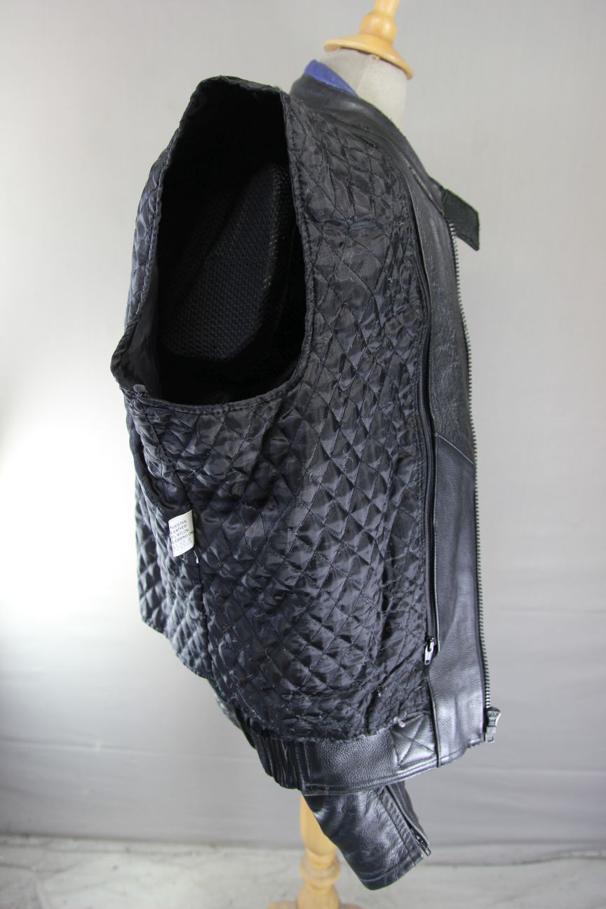 The leather is perforated behind the arms and on the undersides of the sleeves for ventilation.