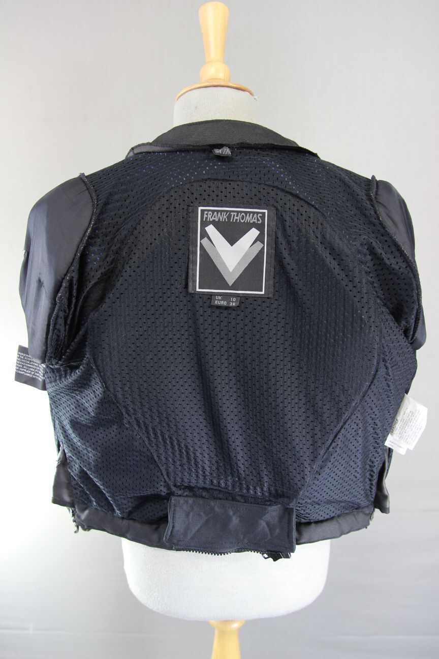 FRANK THOMAS BLACK & BLUE LEATHER & TEXTILE BIKER JACKET WITH CE ARMOUR: SIZE 10