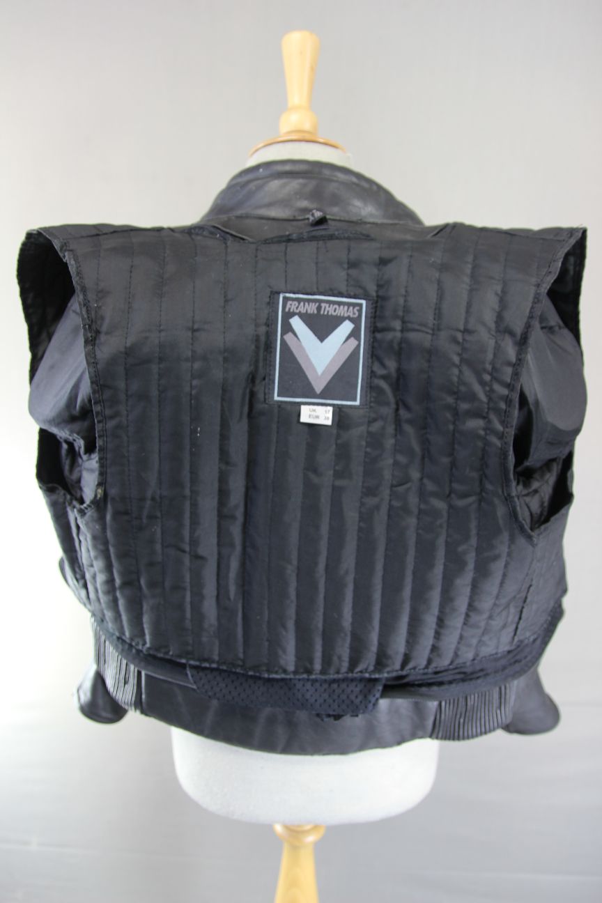 FRANK THOMAS BLACK LEATHER BIKER JACKET WITH PROTECTORS & THERMAL LINING SIZE 12
