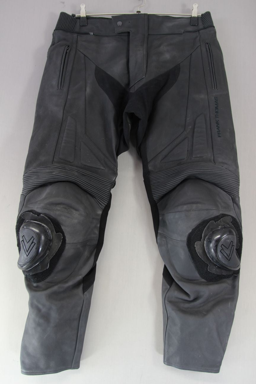FRANK THOMAS BLACK LEATHER BIKER TROUSERS + ARMOUR/KNEE SLIDERS WAIST 36/LEG 31"