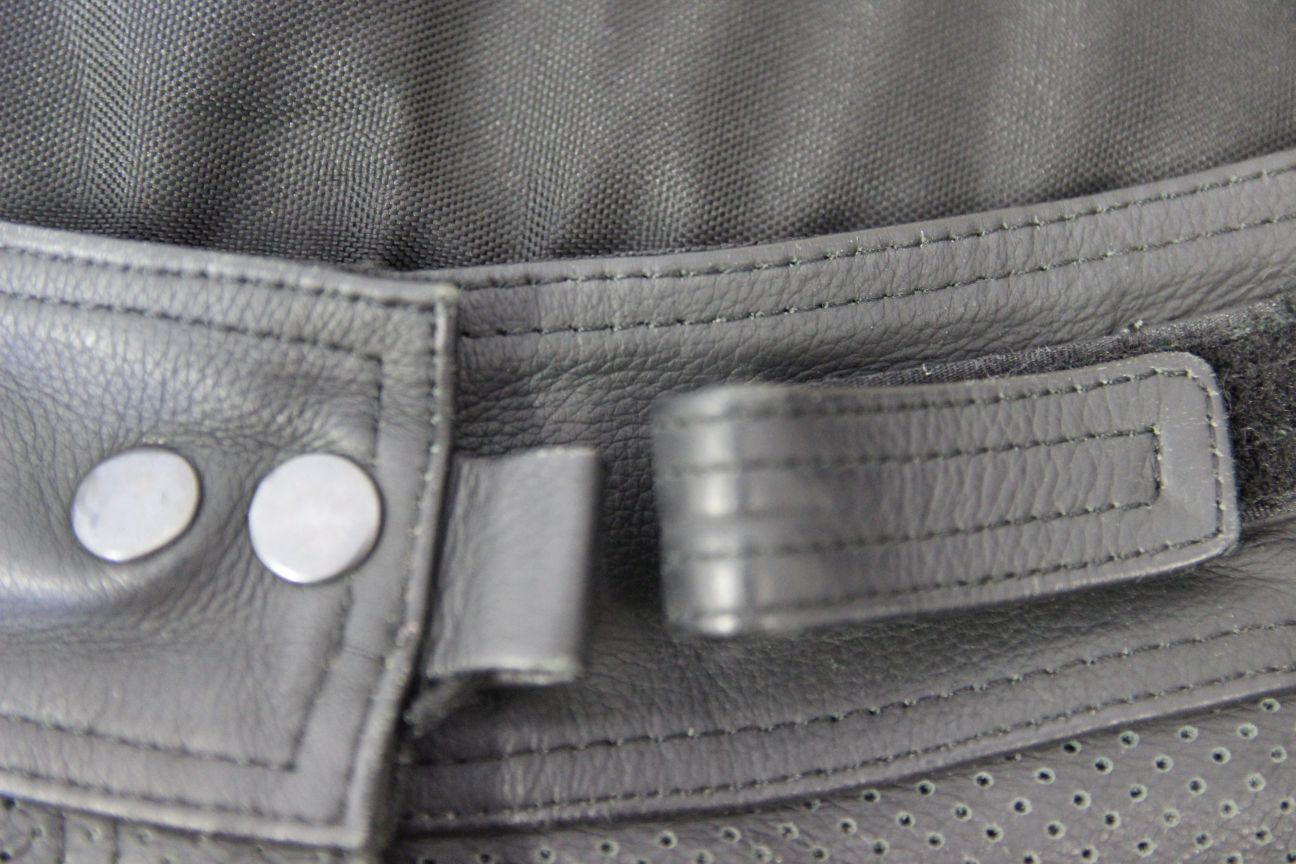Some of the leather is perforated for ventilation and the trousers are partly made from a breathable black textile material. The black lining is also breathable.
