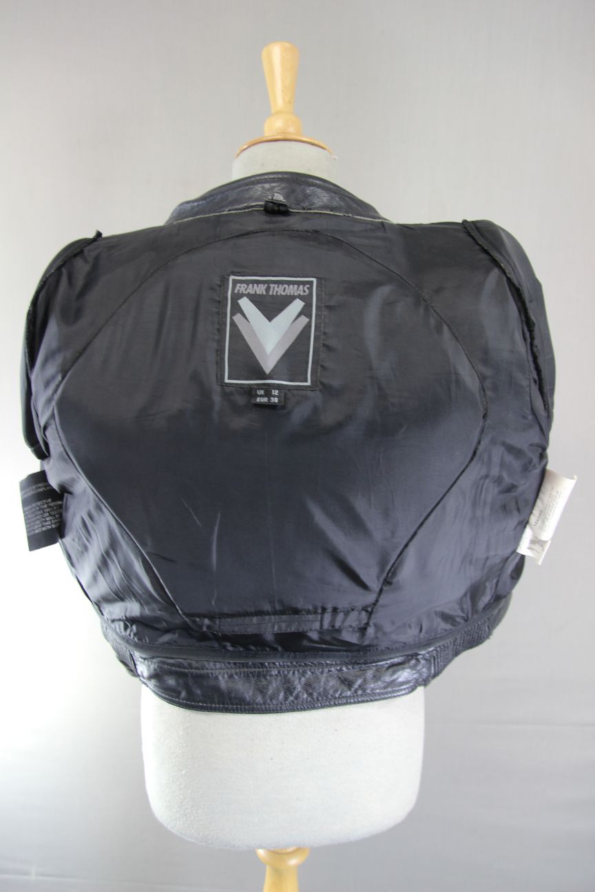 FRANK THOMAS BLACK, RED, SILVER & CREAM LEATHER BIKER JACKET + CE ARMOUR SIZE 12