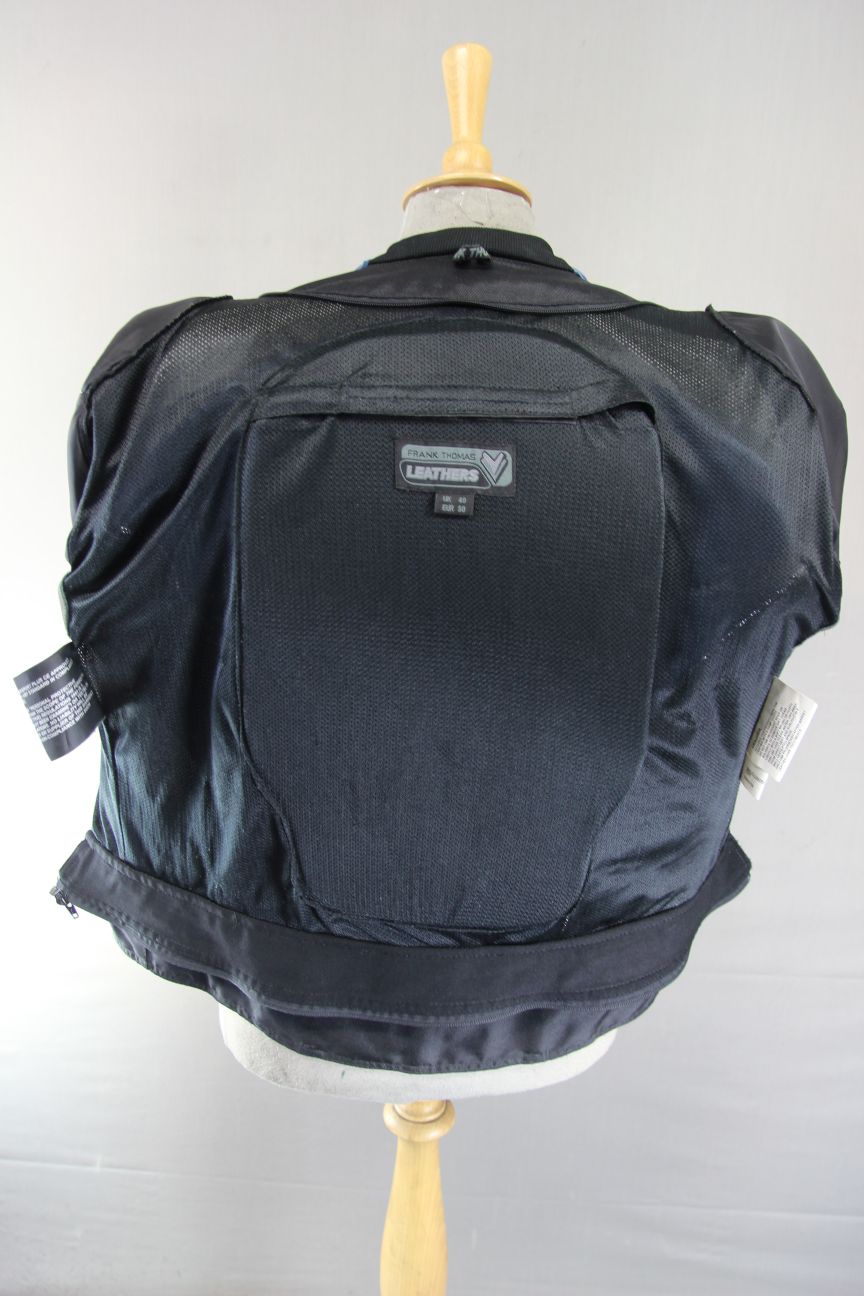 FRANK THOMAS BLUE, BLACK, WHITE & SILVER LEATHER BIKER JCKT WITH PROTECTORS 40IN