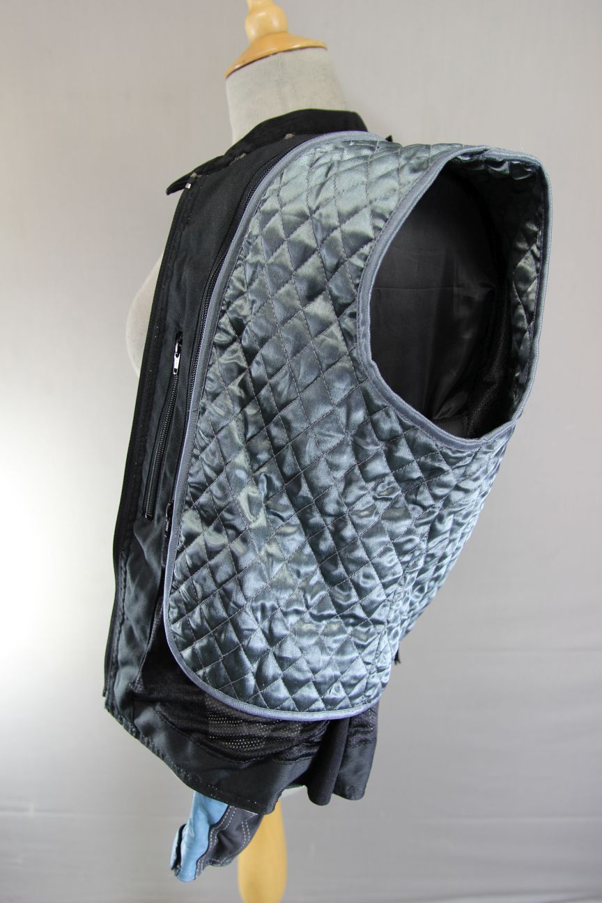 There are velcro fastened 'pockets' on the lining containing removable shoulder & elbow/forearm Armasport Plus CE approved protectors. There is a similar pocket with a removable back protector - this is the foam padding type, not CE armour.