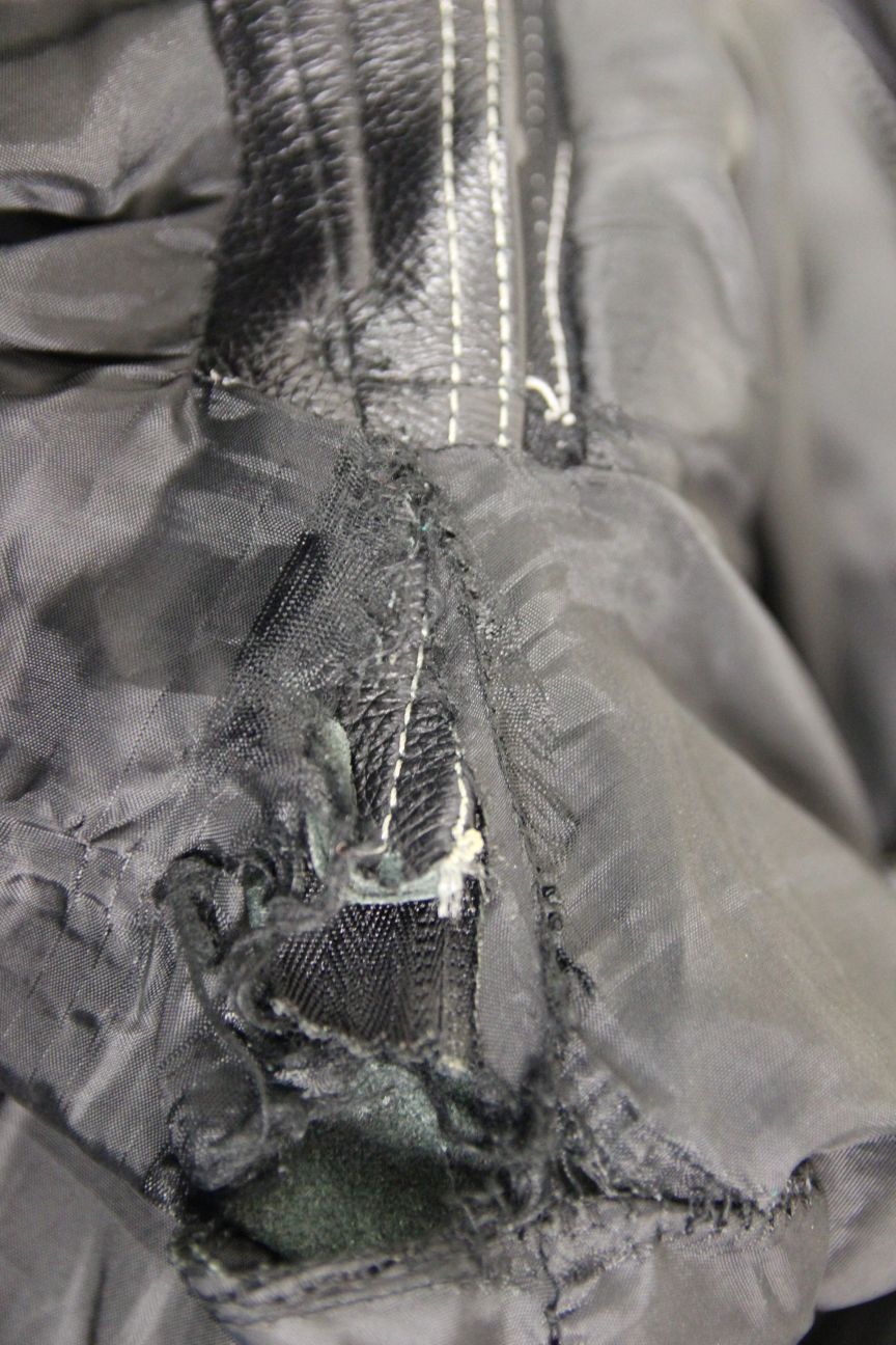 The leather is in very good condition but the lining is torn along the seams just below the zip, please see photos.