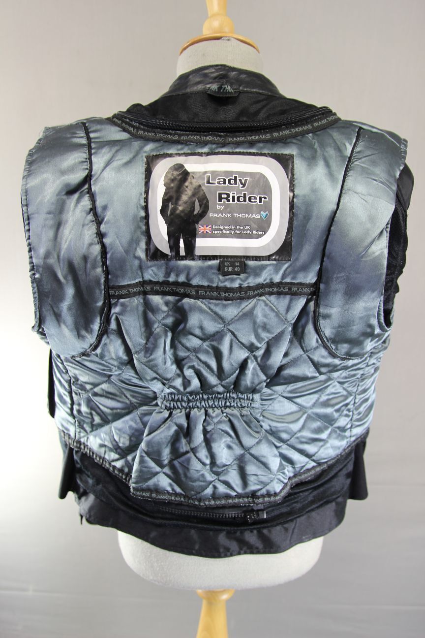 FRANK THOMAS LADY RIDER BLACK LEATHER BIKER JACKET WITH REMOVABLE BACK PROTECTOR & DETACHABLE THERMAL LINING